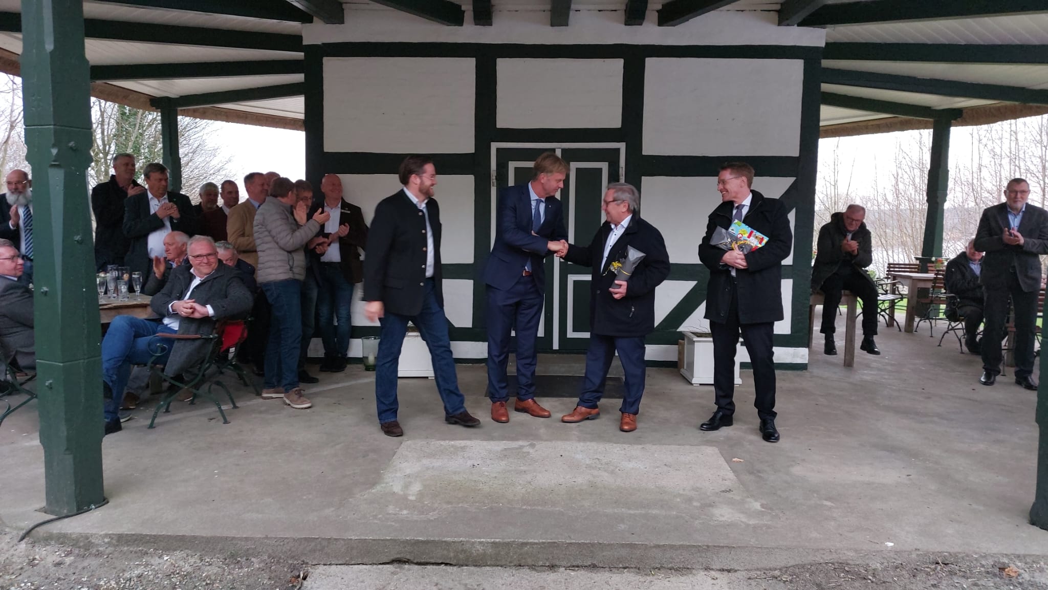Endlich konnte der Bürgermeisterabend wieder stattfinden. Nach zwei Jahren "Coronapause" ein gutes und wichtiges Zeichen. Dass es dieses Format überhaupt gibt, geht auf Hans-Jörn Arp zurück, der die vielen Bürgermeister in seinem ersten Wahlkampf kennenlernen wollte, mit dem Rad besuchte und zum Bürgermeisterabend einlud. Gemeinsam mit dem leider viel zu früh verstorbenen Fiete Tiemann hob er vor fast 25 Jahren diese Institution aus der Traufe. Auch dafür und als Dank für seinen Einsatz für unsere Region fand Heiner Rickers lobende Worte für Arp und überreichte ein kleines Präsent.