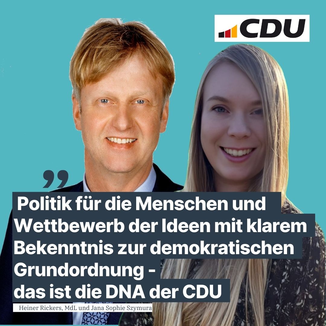 Der Steinburger CDU-Kreisvorsitzende Heiner Rickers, MdL zeigt sich von den jüngsten grünen Kreistagsäußerungen irritiert: „Jedes Mitglied unserer Partei bekennt sich zu unserer parlamentarischen Demokratie und wir haben vollstes Vertrauen in unsere gewählten Mandats- und Funktionsträger. Schon mit dem Beitritt bekennt sich jedes Mitglied zu unserer demokratischen Grundordnung. Das ist die DNA, die jeder in sich trägt, der sich in unserer Partei engagiert, da brauchen wir keine Belehrungen. Viel mehr ist es unsere gemeinsame Aufgabe als Demokraten gute Politik für die Menschen zu machen, statt uns gegenseitig mit Behauptungen zu überziehen.“ Rickers reagiert damit auf Aussagen in der letzten Kreistagssitzung, wonach Birgit Asmus-Mrozek sich „überzeugt zeigte“, in der CDU würde es „einige echte Demokraten“ geben.