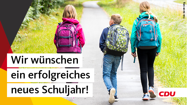 Mit dem heutigen Montag startet landesweit das neue Schuljahr. Auch in Steinburg beginnt für viele Schulanfänger diese Woche ein neuer Abschnitt. Die CDU Steinburg gratuliert den neuen Erstklässlern und warnt gleichzeitig vor damit verbundenen Risiken im Straßenverkehr. Der Kreisvorsitzende Heiner Rickers erklärte dazu: "Für die ABC-Schützen beginnt nun eine neue Phase mit vielen neuen Eindrücken und Freunden. Da einige von Ihnen sich nun regelmäßig allein im Straßenverkehr bewegen, ist es unsere Pflicht als Verkehrsteilnehmer auf diese besonders Rücksicht zu nehmen. Entfernungen und Geschwindigkeiten können die Erstklässler kaum richtig einschätzen - fahren Sie bitte in den nächsten Wochen besonders vorsichtig."