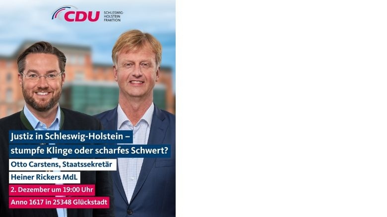 Die CDU Steinburg lädt in Kooperation mit der CDU-Landtagsfraktion herzlich ein zu einem informativen Abend mit Staatssekretär Otto Carstens und Heiner Rickers, MdL.