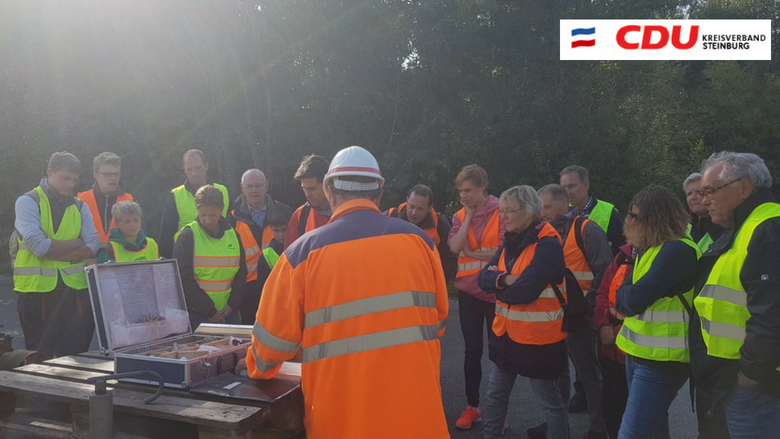 Auch Lägerdorfs Bürgermeister Jürgen Tiedemann nahm an der Veranstaltung teil und nutzte die Gelegenheit, um mit unserem Bundestagsabgeordneten Mark Helfrich und der örtlichen Kreistagsabgeordneten Claudia Buschmann ins Gespräch zu kommen. Die Entwicklung und hier vor allem die Chancen des Ortes Lägerdorf standen dabei im Mittelpunkt. Nach gut vier Stunden neigte sich der Ausflug dem Ende. Teils sehr schöne Funde konnten die Teilnehmer mit nach Hause nehmen. Neben diesen nahmen sie aber auch die Eindrücke rund um die Grube und die wirtschaftliche Bedeutung des Holcim-Werkes für unseren Kreis mit.