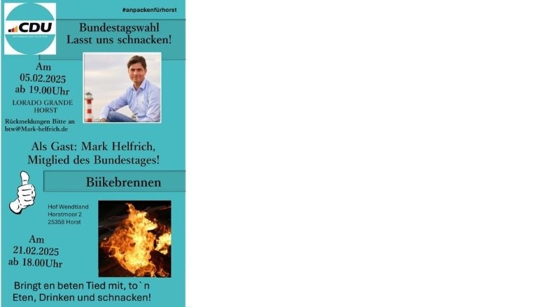 AnsprechpartnerPeter Kurz Telefon0178/8955256 E-Mailinfo [at] cdu-horst.de Facebookhttps://www.facebook.com/share/17empaiSiT/ Threadshttps://whatsapp.com/channel/0029VbB0O486mYPT8ZR4BR3t Instagramhttps://www.instagram.com/cdu_horst_holstein?igsh=N2sycnE2MDFzcHQ2